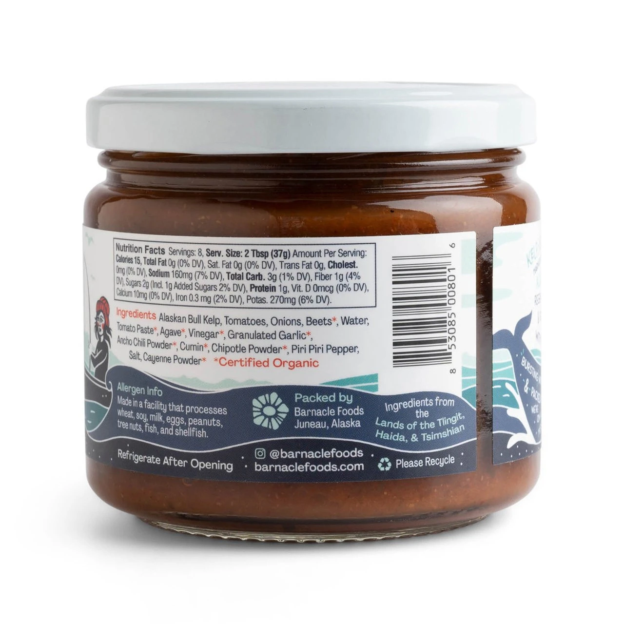 Alaskan Kelp, Tomato, Vinegar, Onion, Beet, Tomato Paste, Agave, Garlic, Ancho Pepper, Cumin, Cayenne Pepper, Chipotle, Salt, African Bird Pepper.