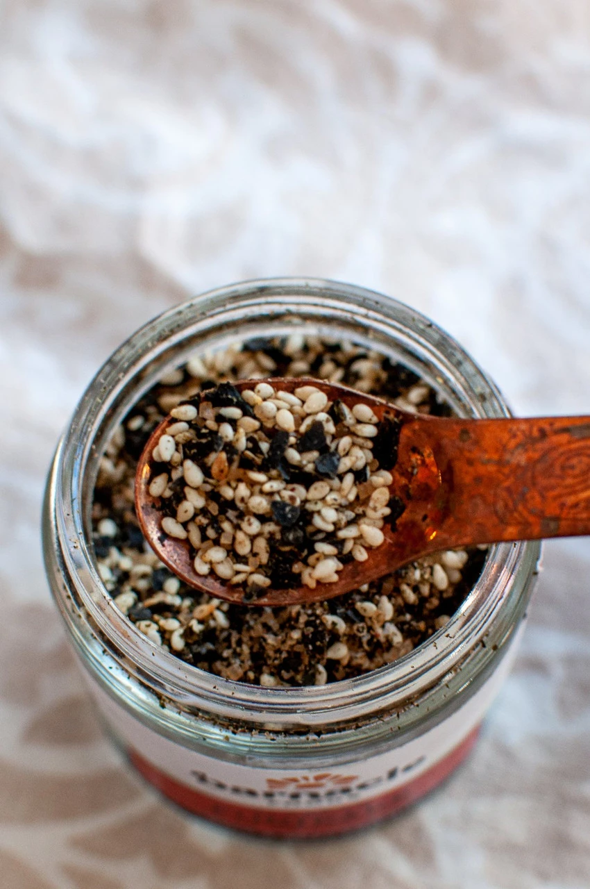Kelp boosts umami in this Japanese-inspired rice seasoning. This blend of dried kelp, toasted sesame seeds, bonito flakes, and a dash of sugar give instant richness to any food you top it on. Inspired by Japanese furikake blends, this mix tops anything from rice, seafood, meats, to salads or popcorn. Keep it in your galley and level up your dishes.