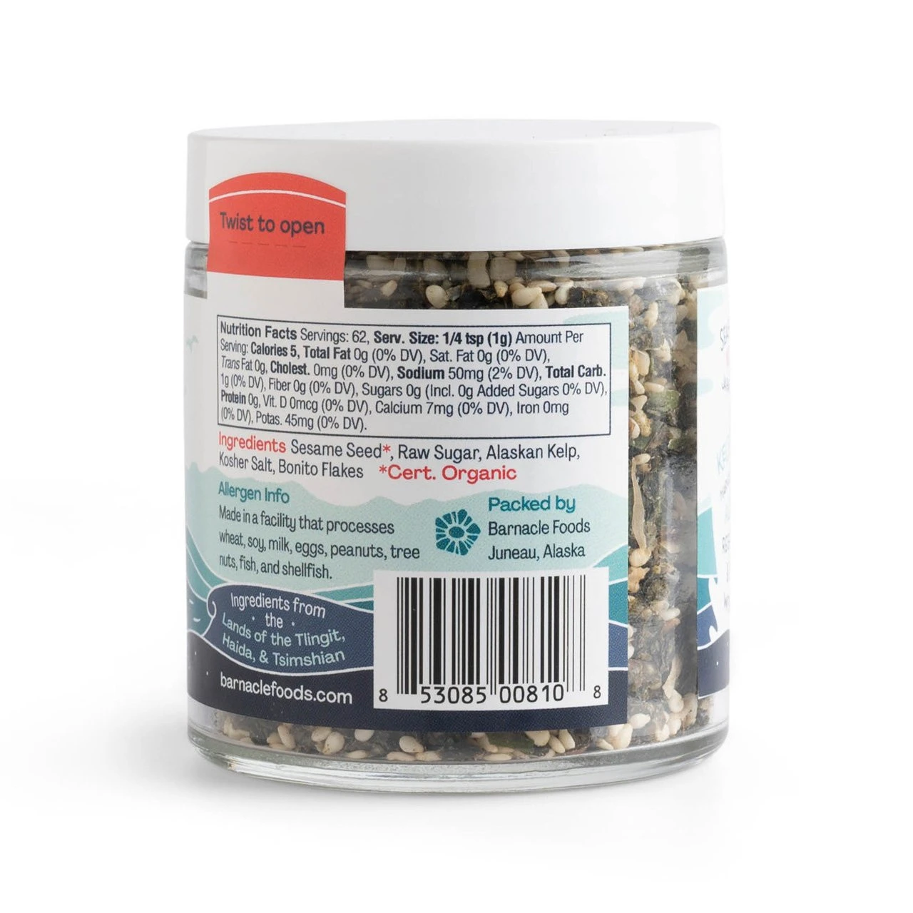 Sesame Seed*, Raw Sugar, Alaskan Kelp, Kosher Salt, Bonito Flakes