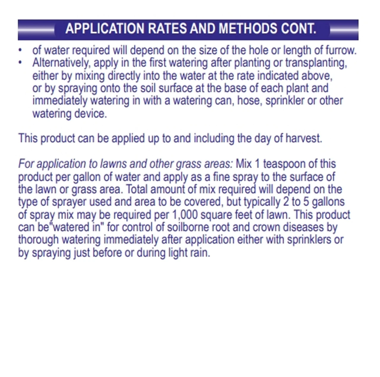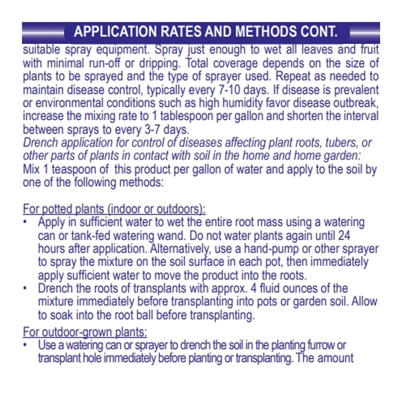 - EASY TO APPLY – Applied as either a foliar spray or soil drench. The spray application is for controlling diseases that affect above-ground plant parts. While the drench application is for controlling diseases that affect parts of plants under soil.