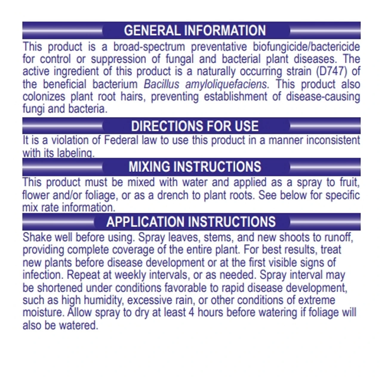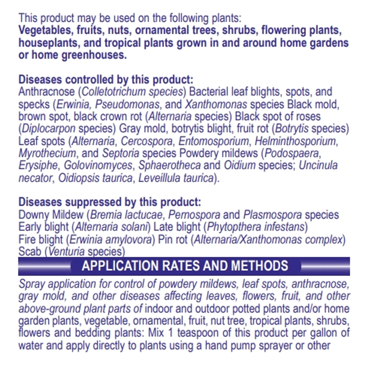 - TRIGGERS PLANT IMMUNE RESPONSE – Product is a broad-spectrum preventative biofungicide/bactericide for control or suppression of fungal and bacterial plant diseases. It helps control listed blights, molds, rots, spots, and mildews.