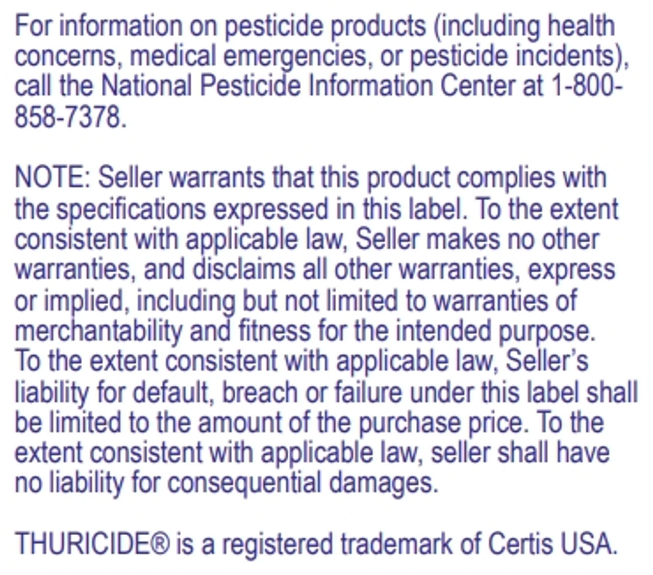 - PROTECTS VEGETABLES, FRUITS, NUTS, SHADE TREES & ORNAMENTALS – Thuricide is designed for use on a variety of plants including almonds, apples, pears, cherries, grapes, oranges, celery, broccoli, cabbage, pecans plus shade trees and ornamentals.