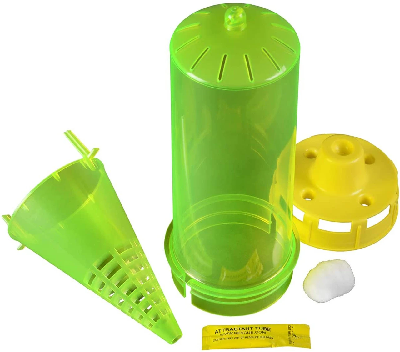 - HIGHLY EFFECTIVE – Lured in by our specially formulated attractant, yellowjackets fly in through the holes in the bottom of the trap, continue upward through the interior cone, and become trapped. Once inside, they die from dehydration—no killing agent required.