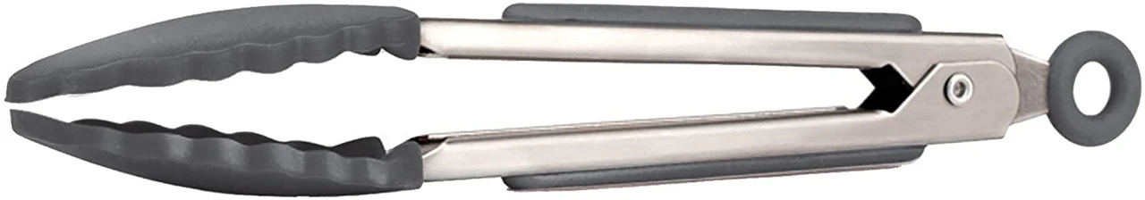 - PULL RING LOCKS ARMS IN PLACE: Keep the tongs closed with the handy locking mechanism. Pull the ring to lock the tongs in the closed position and push it in to release the arms. Locking mechanism ensure that tongs fit neatly in drawers.