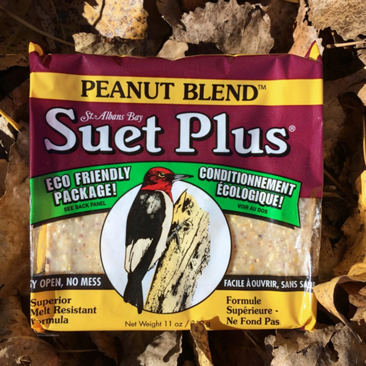 The Peanut blend is made from quality ingredients for better nutrition. It has been field tested to attract the greatest variety of wild birds. Suet Plus Cakes also feature the easy open no mess wrapper. There’s no internal tray, just unwrap, and insert into your feeder. It is highly recommended to refrigerate prior to opening. No more greasy fingers, and there’s less packaging waste. It’s a win-win situation.